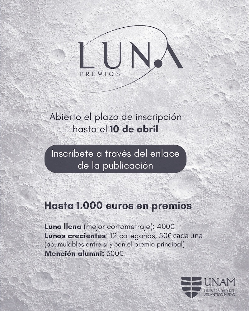 Atlántico Medio abre la convocatoria de los Premios Luna. El evento tiene como objetivo reconocer y visibilizar el talento audiovisual del alumnado universitario.